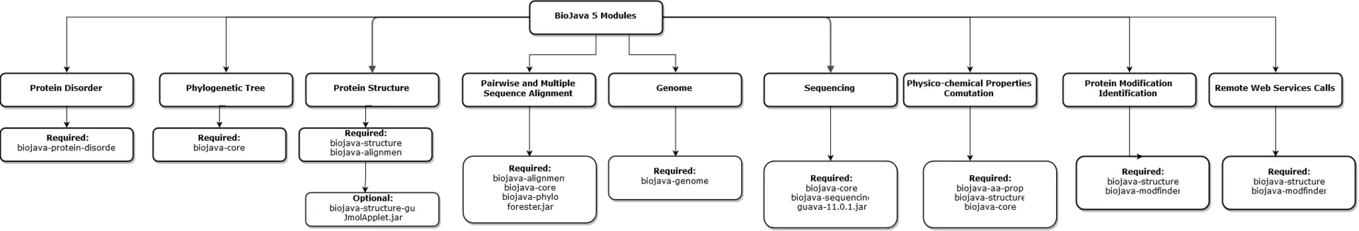 The following sections will describe several of the new modules and highlight some of the new features that are included in the latest version of BioJava.