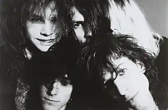 A number of factors influenced the focus on such subject matter. Many grunge musicians displayed a general disenchantment with the state of society, as well as a discomfort with social prejudices. Grunge lyrics contained "explicit political messages and ... questioning about ... society and how it might be changed."[81] While grunge lyrics were less overtly political than punk songs, grunge songs still indicated a concern for social issues, particularly those affecting young people.[77] The main themes in grunge were "tolerance of difference", "support of women", "mistrust of authority" and "cynicism towards big corporations."[77] Grunge song themes bear similarities to those addressed by punk rock musicians.[5] In 1992, music critic Simon Reynolds said that "there's a feeling of burnout in the culture at large. Kids are depressed about the future".[82] The topics of grunge lyrics–homelessness, suicide, rape,[77] "broken homes, drug addiction and self-loathing"–contrasted sharply to the glam metal lyrics of bands like Poison, which described "life in the fast lane",[83] partying, and hedonism.