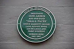 On 4 September 2007, a Small Faces and Don Arden commemorative plaque, issued by the London Borough of Westminster, was unveiled in their memory in Carnaby Street.[13] Kenney Jones, who attended the ceremony, said in a BBC television interview, "To honour Small Faces after all these years is a terrific achievement. I only wish that Steve Marriott, Ronnie Lane and the late Don Arden were here to enjoy this moment with me."[13]