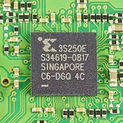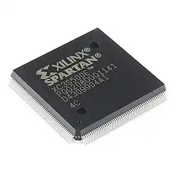 Xilinx designs and develops programmable logic products, including integrated circuits (ICs), software design tools, predefined system functions delivered as intellectual property (IP) cores, design services, customer training, field engineering and technical support.[17] Xilinx sells both FPGAs and CPLDs for electronic equipment manufacturers in end markets such as communications, industrial, consumer, automotive and data processing.[108][109][110][111][112][113][114]